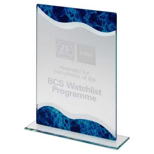 Jade Glass Rectangle Plaque With Silver|blue Marble Detail (4mm Thick) - 8in