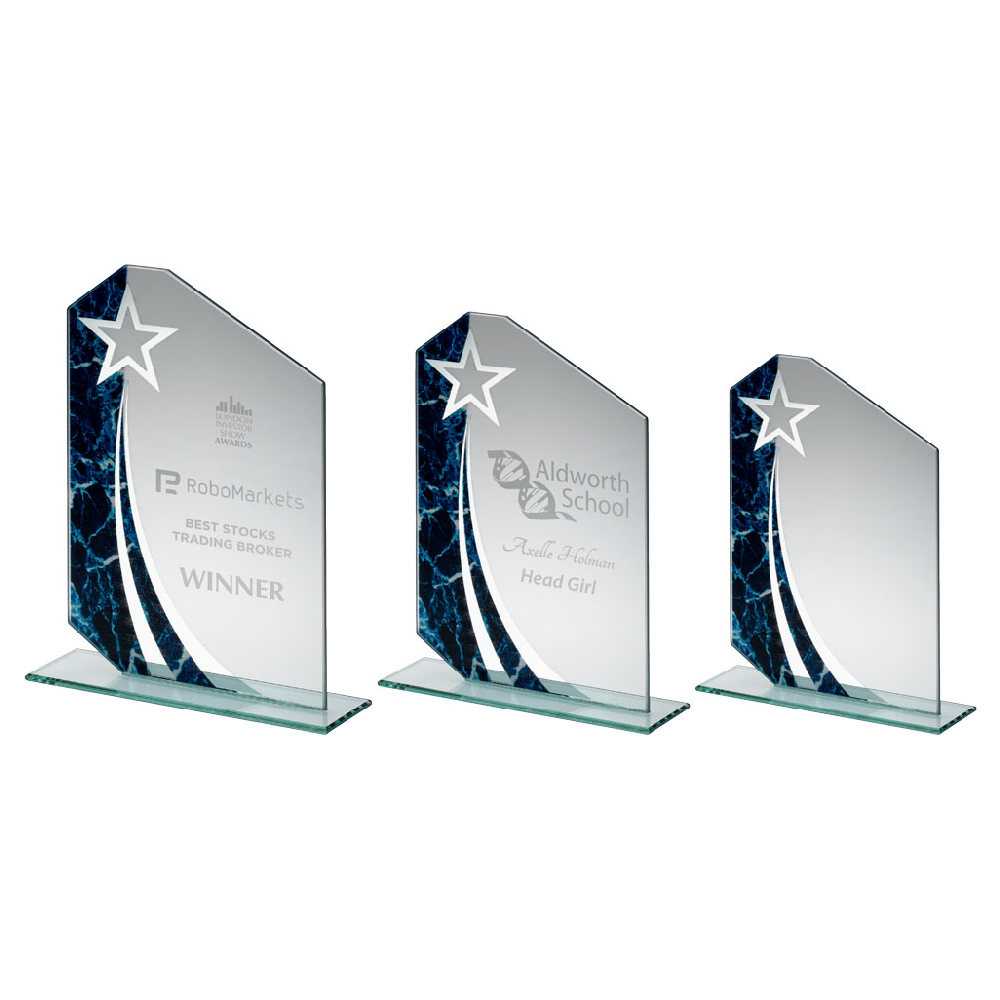 Jade Glass Plaque With Blue|black Marble Design (4mm Thick) - 7.25in