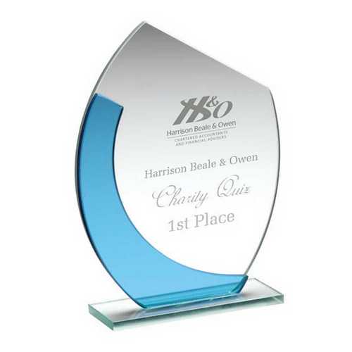 Jade|blue Glass Oval Plaque With Angled Top - (4mm Thick) 7in