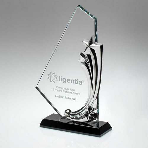 Clear|blk Glass Plaque With Metal Stars (10mm Thick) - 7.75in