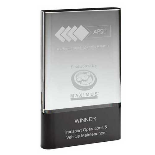 Clear Glass Plaque On Black Base (30mm Thick) - 9in