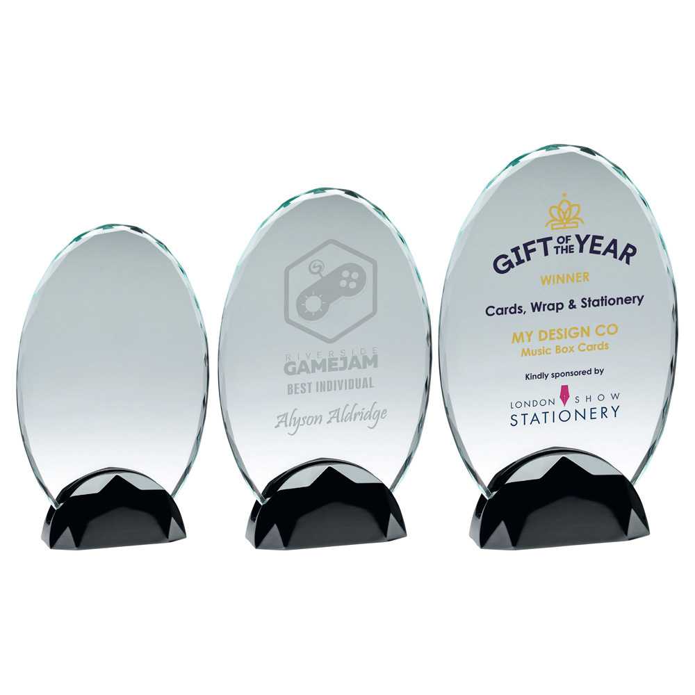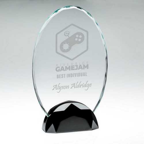 Clear Glass Oval Plaque (10mm Thick) In Gun Metal Base - 8.75in