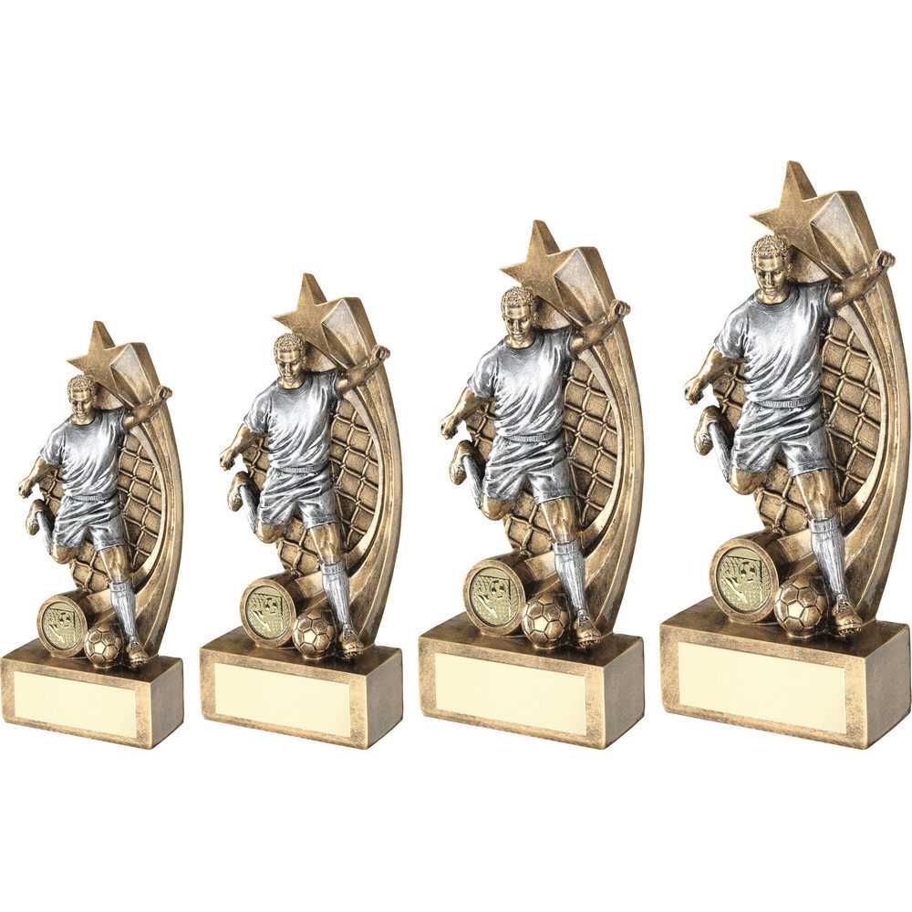 Brz|pew Male Football Figure On Star Net Backing With Plate (1in Centre) - 9"