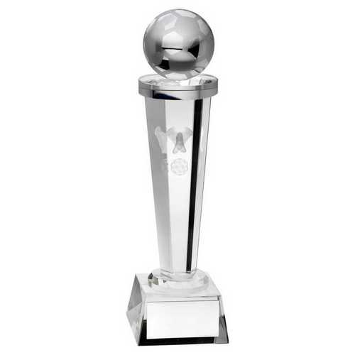 Clear Glass Column With Lasered Football Image With Plate - 10in