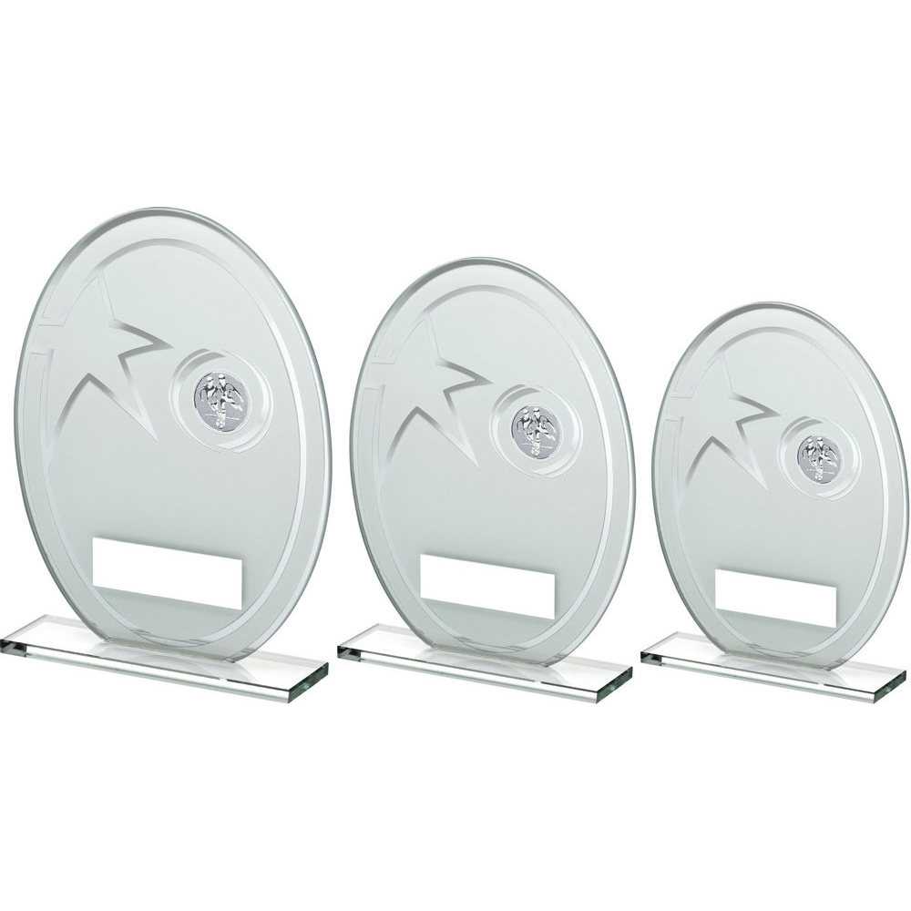 White|silver Printed Glass Oval With Football Insert And Plate - 8in