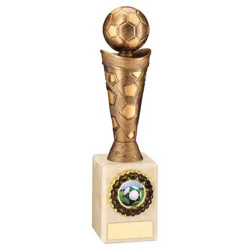 Bronze|gold Plastic Football Figure On Cream Marble Trophy - (1in Cen) 9in