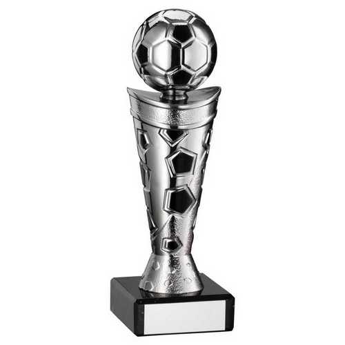 Silver|black Plastic Football Figure On Black Marble Trophy - 8in