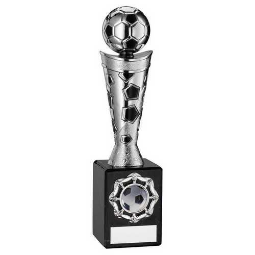 Silver|black Plastic Football Figure On Black Marble Trophy - (1in Cen) 9in