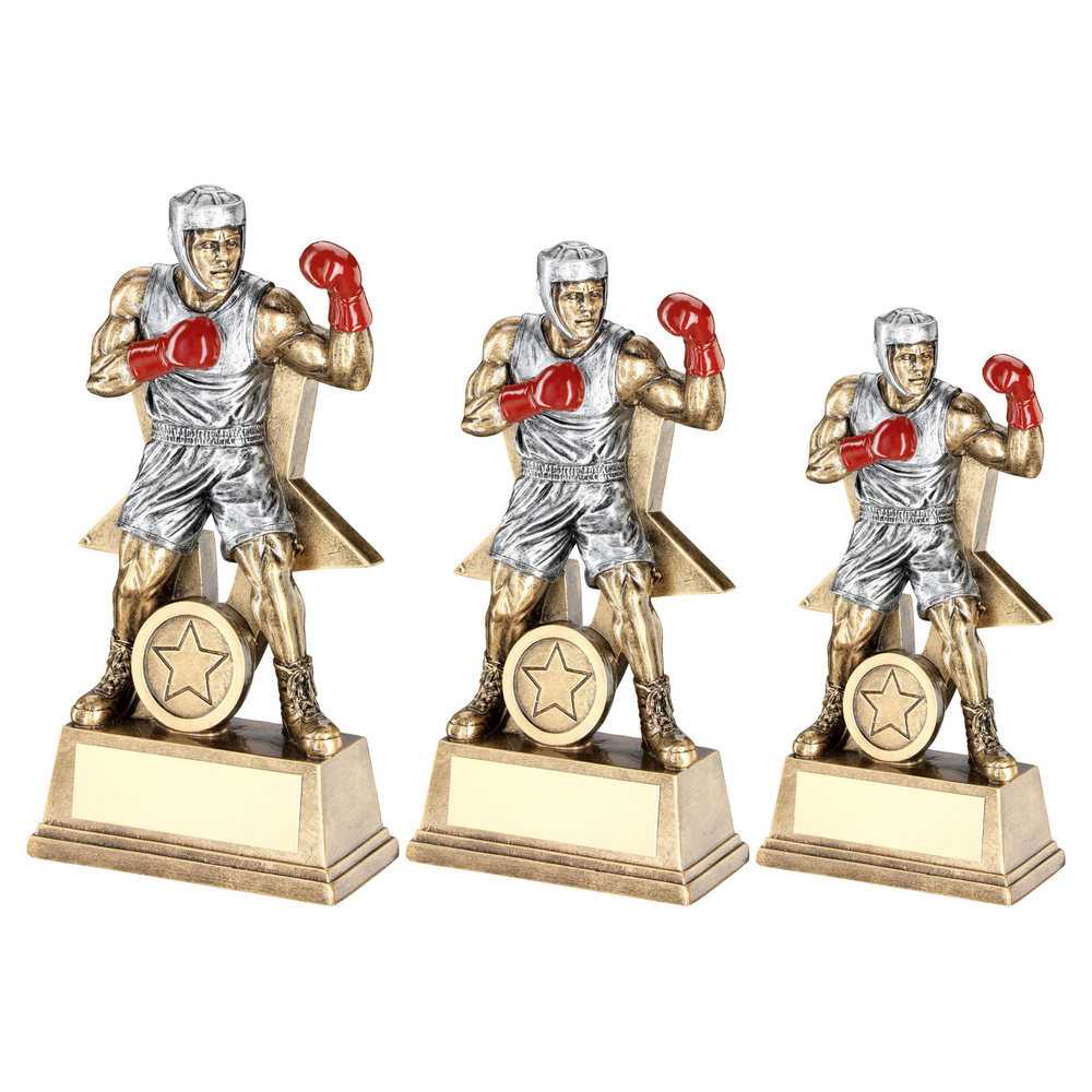 Brz|pew|red Male Boxing Figure With Star Backing With Plate (1in Centre) - 6in