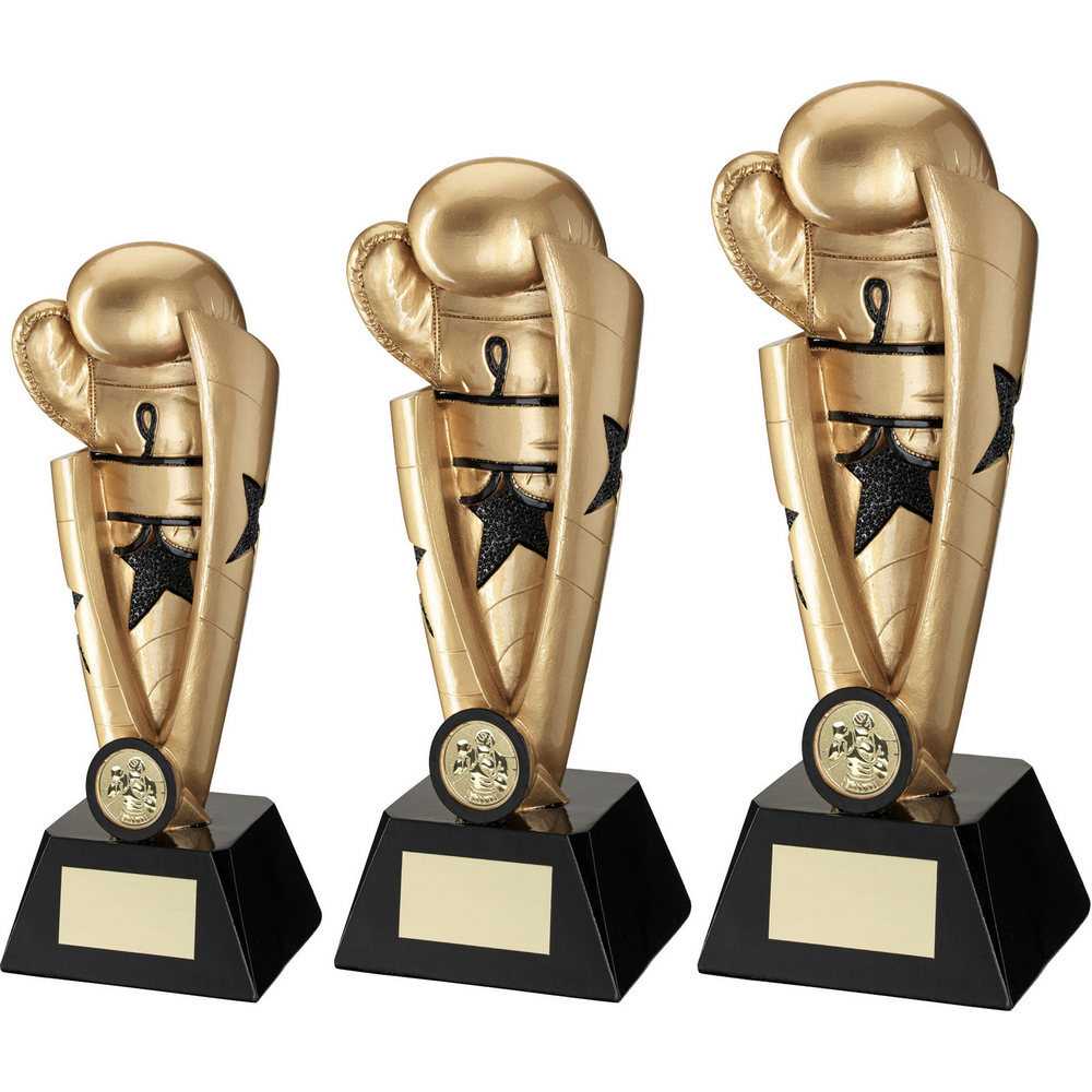 Gold|black Boxing Star Column With Plate (1in Centre) - 7.25in