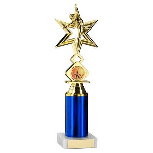 Gold|blue Dance|gym Star Figure Assembled On Marble - (1" Cen|1" Tube) 8in