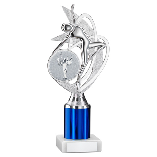 Silver|blue Dance|gym Figure Assembled On Marble - (2" Cen|2" Tube) 9in
