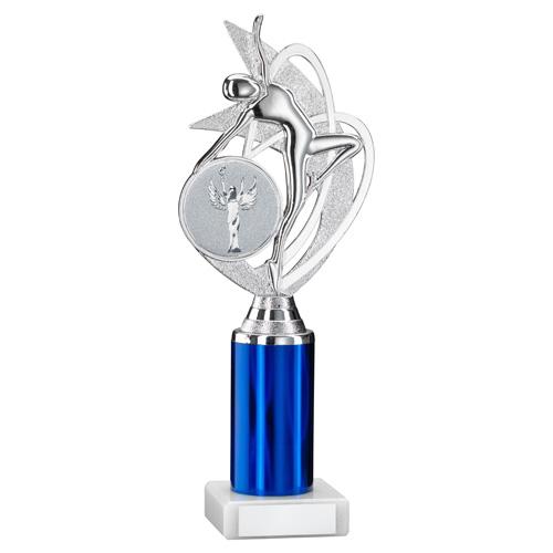Silver|blue Dance|gym Figure Assembled On Marble - (2" Cen|3" Tube) 10in