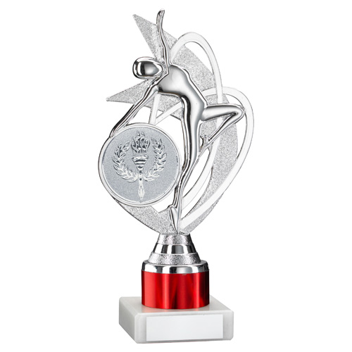Silver|red Dance|gym Figure Assembled On Marble - (2" Cen|2" Tube) 9in