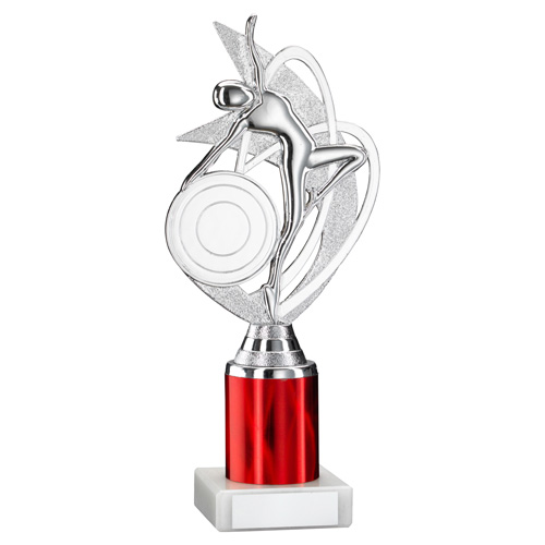 Silver|red Dance|gym Figure Assembled On Marble - (2" Cen|3" Tube) 10in