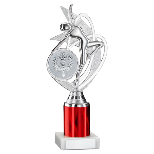 Silver|red Dance|gym Figure Assembled On Marble - (2" Cen|2" Tube) 9in