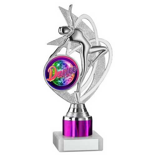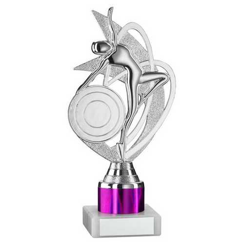Silver|purple Dance|gym Figure Assembled On Marble - (2" Cen|1" Tube) 8in