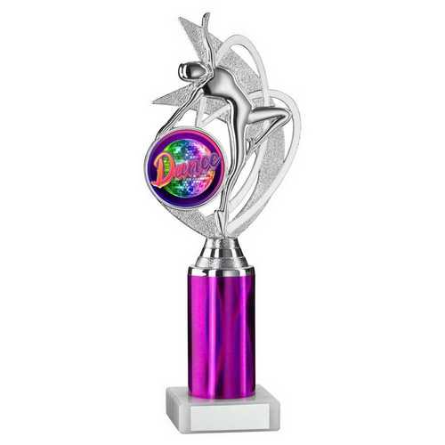 Silver|purple Dance|gym Figure Assembled On Marble - (2" Cen|3" Tube) 10in