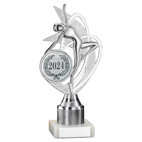 Silver|white Dance|gym Figure Assembled On Marble - (2" Cen|1" Tube) 8in