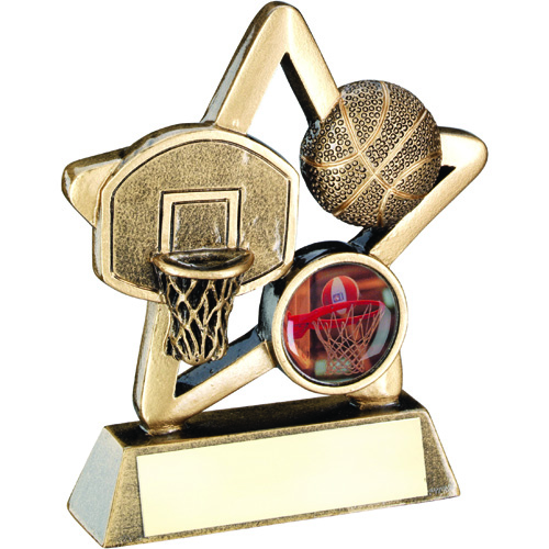 Brz|gold Basketball Mini Star With Plate (1in Centre) - 4.25in