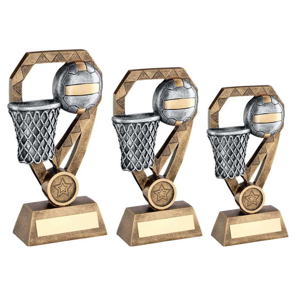Brz|pew|gold Netball With Net On Diamond With Plate (1in Centre) - 6in