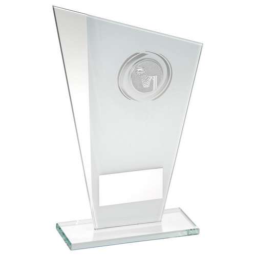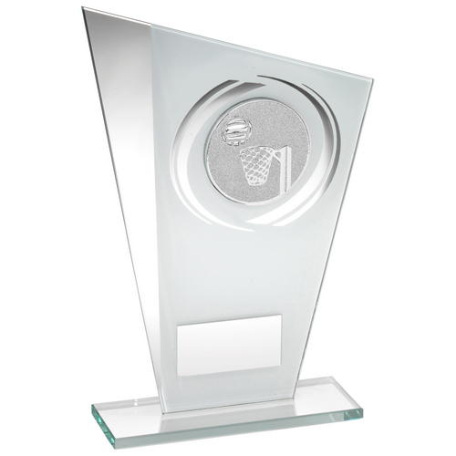White|silver Printed Glass Plaque With Netball Insert With Plate - 8in