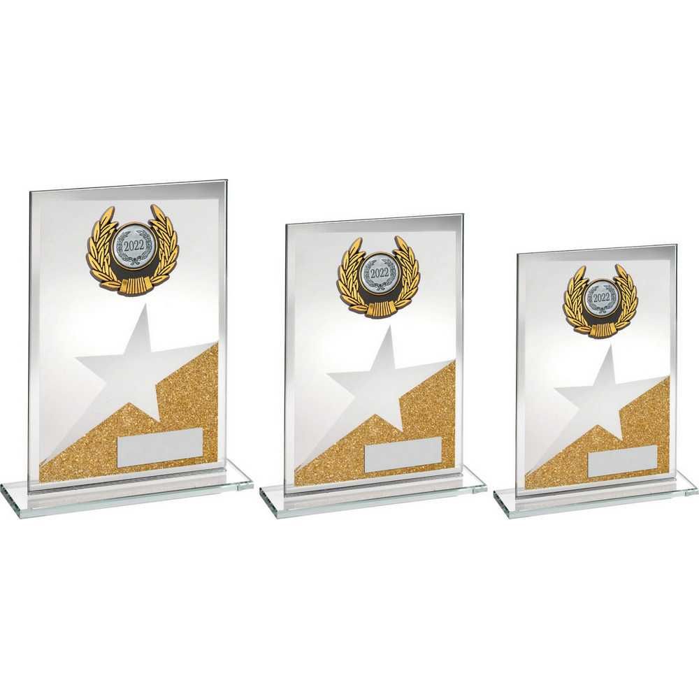 Jade|gold|silv Glass Plaque With Silv|blk Trim Trophy (1in Centre) - 7.25in