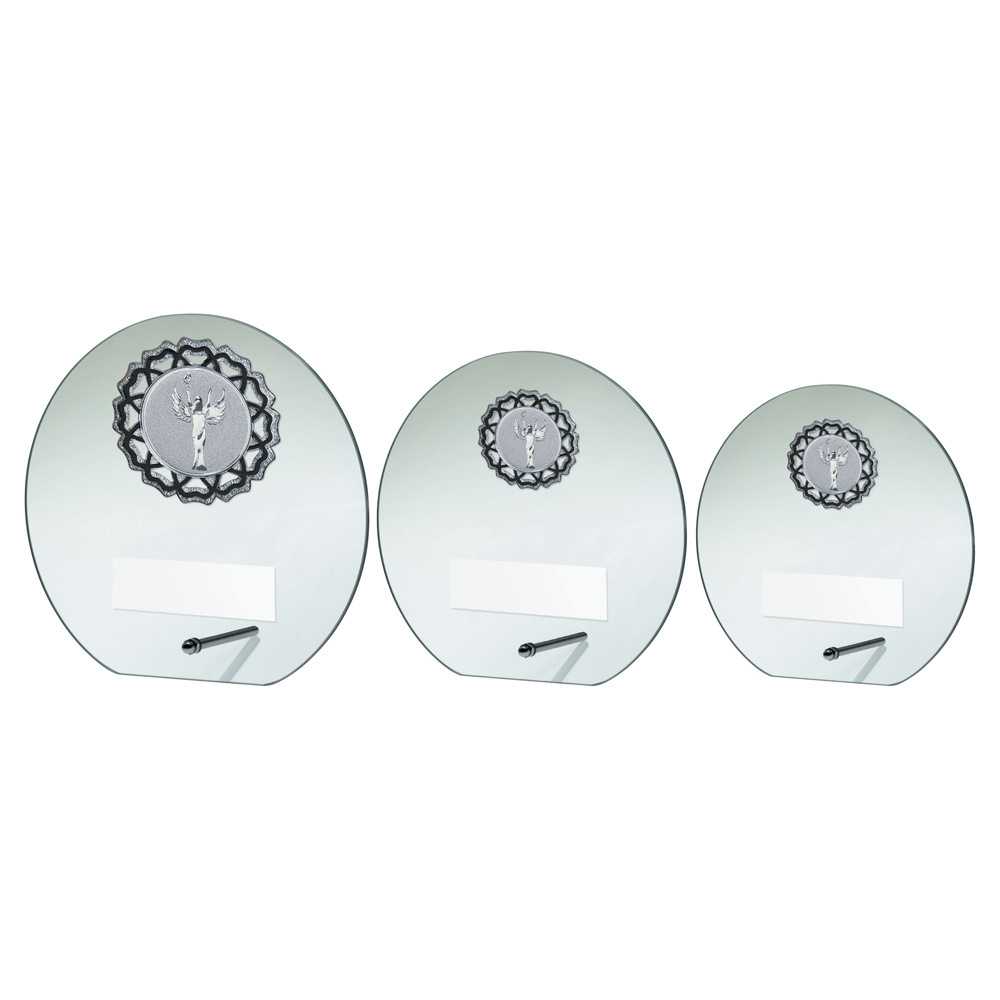 Jade Glass Round Plaque With Silv|blk Trim Trophy - (2in Centre) 6.5in