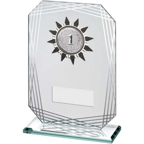 Jade Glass With Red Marble Backing And Gold Trim Trophy (1in Centre) - 6.5in