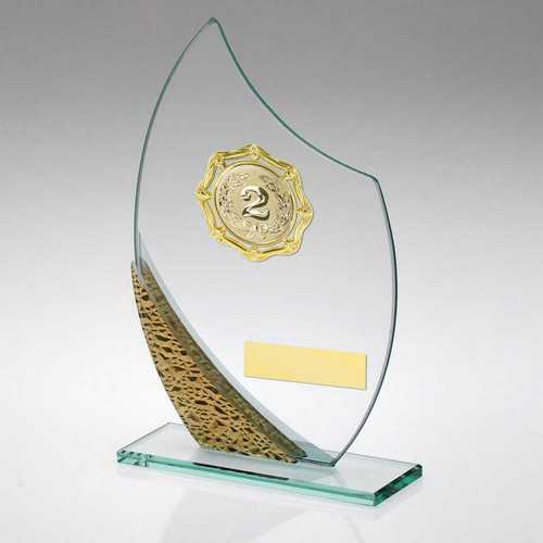 Jade|silv|gold Glass Plaque With Gold Trim Trophy - (1in Centre) - 6.5in