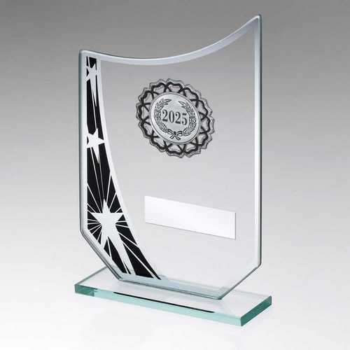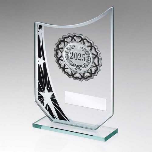 Jade|blk|silv Glass Star Plaque With Silv|blk Trim Trophy - (1in Cen) - 7.25in