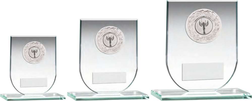 Picture of Jade Glass Shield Plaque With Silver Round Metal Trim Trophy (1in Cen) - 5.25in Picture of Jade Glass Shield Plaque With Silver Round Metal Trim Trophy (1in Cen) - 5.25in Picture of Jade Glass Shield Plaque With Silver Round Metal Trim Trophy (1in Cen) - 5.25in