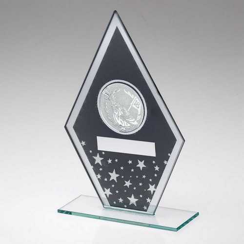 Grey|silver Printed Glass Diamond With Golf Centre And Plate - 8in