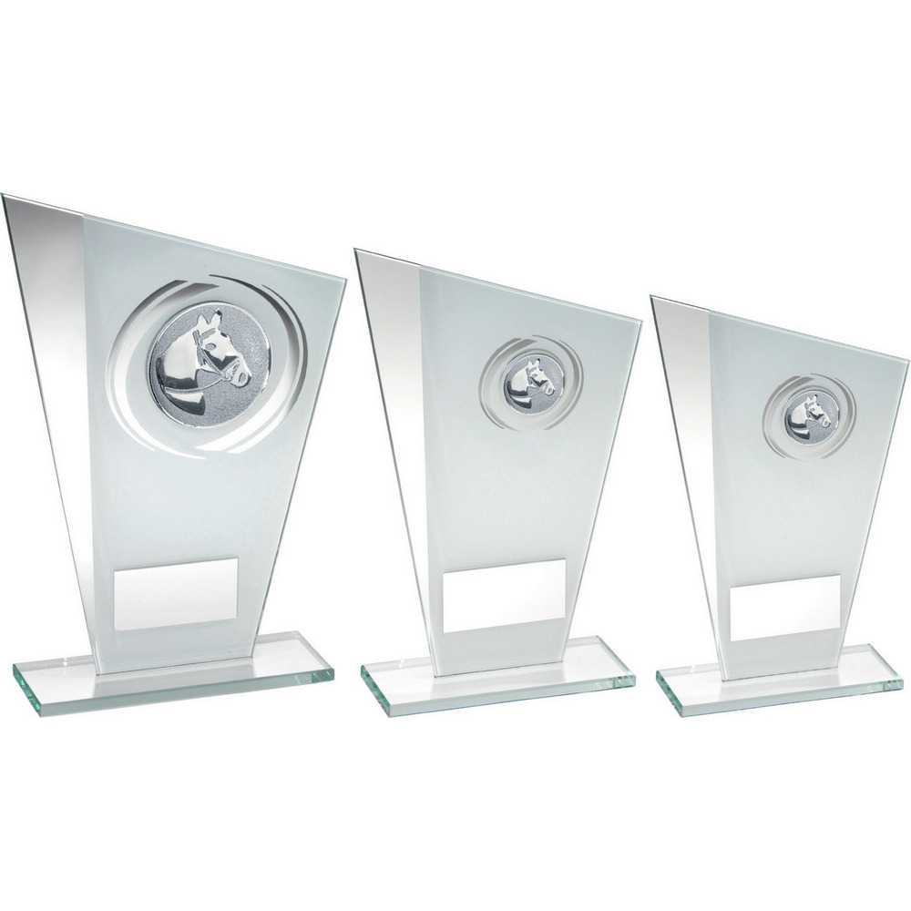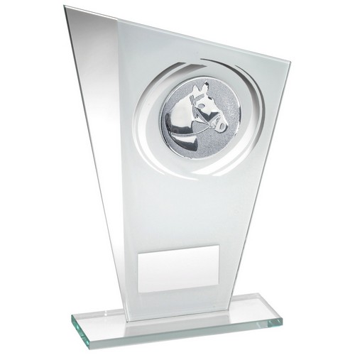 White|silver Printed Glass Plaque With Horse Insert And Plate - 8in