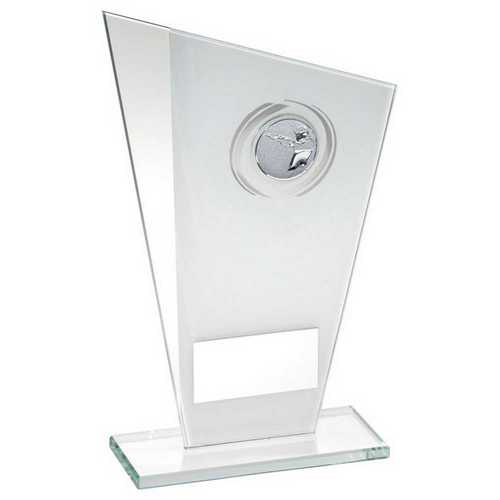 White|silver Printed Glass Plaque With Shooting Insert And Plate - 8in