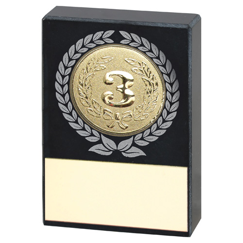 Black Marble With Silver|gold Wreath And Plate (1in Centre) - 3x2in