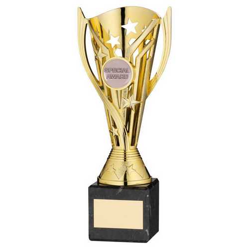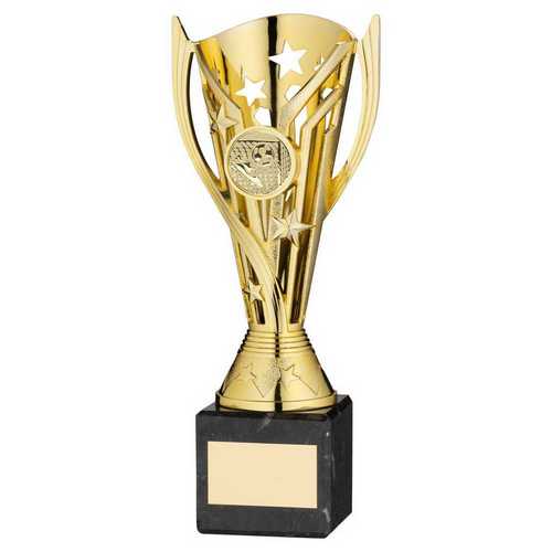Gold Plastic Flash Cup On Black Marble Assembled Trophy (1" Cen) - 9in