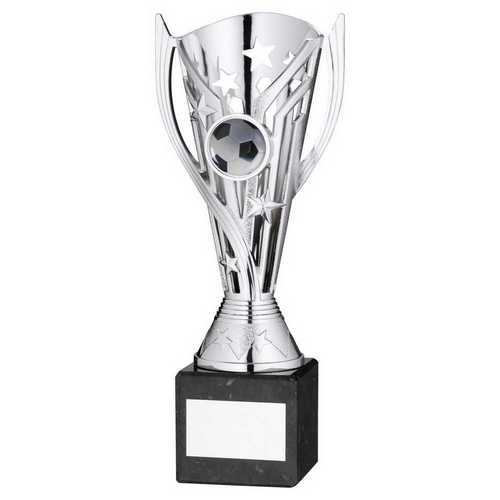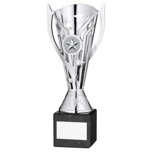 Silver Plastic Flash Cup On Black Marble Assembled Trophy (1" Cen) - 9in