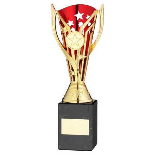 Gold|red Plastic Flash Cup On Black Marble Assembled Trophy (1" Cen) - 9in