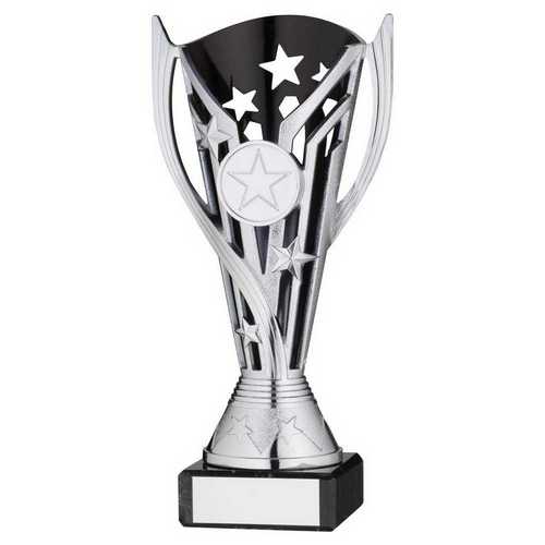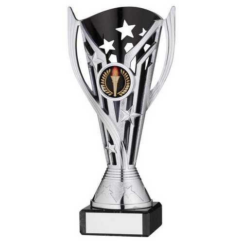 Silver|blk Plastic Flash Cup On Blk Marble Assembled Trophy (1" Cen) - 9in