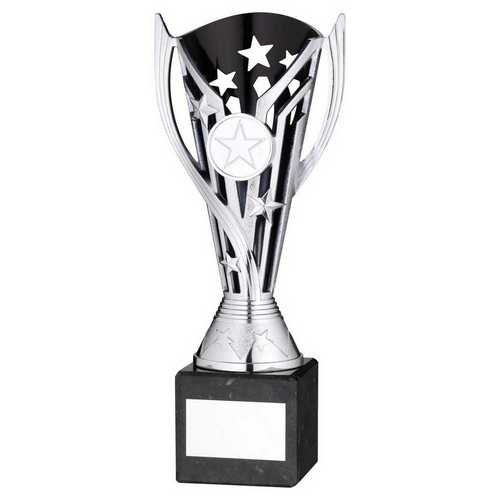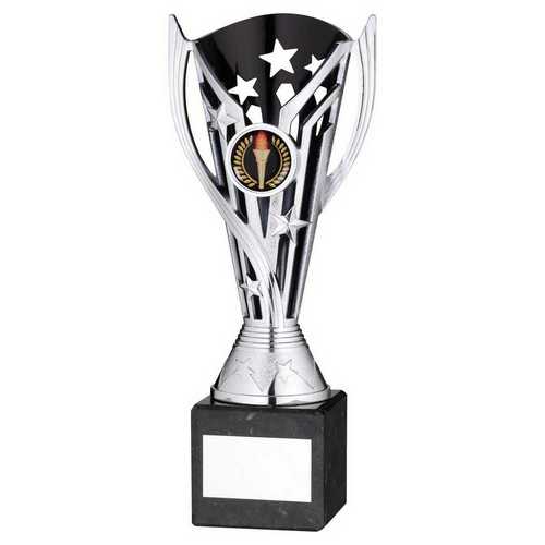 Silver|blk Plastic Flash Cup On Blk Marble Assembled Trophy (1" Cen) - 9in