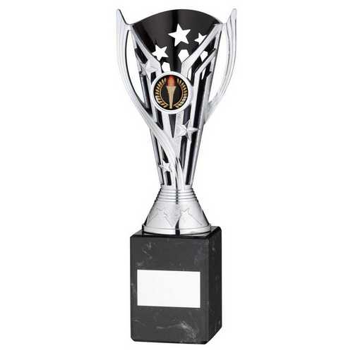Silver|blk Plastic Flash Cup On Blk Marble Assembled Trophy (1" Cen) - 9in