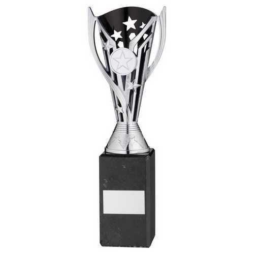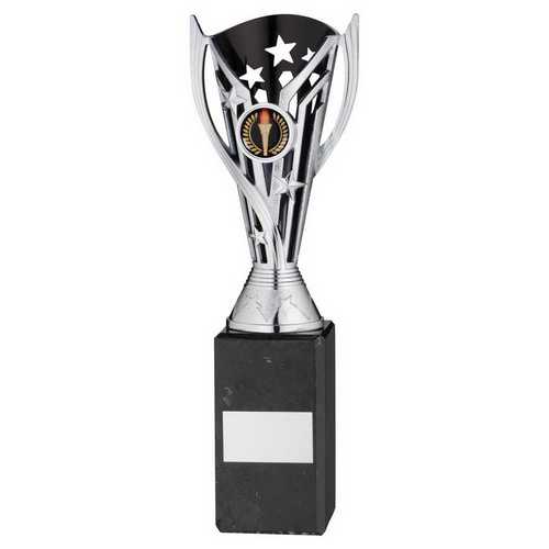 Silver|blk Plastic Flash Cup On Blk Marble Assembled Trophy (1" Cen) - 9in