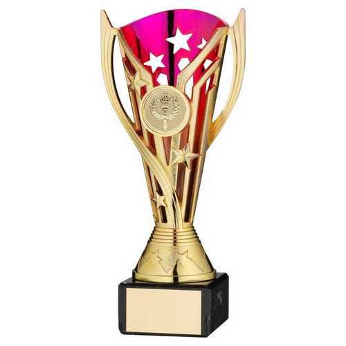 Gold|purple Plastic Flash Cup On Blk Marble Assembled Trophy (1" Cen) - 9in