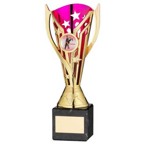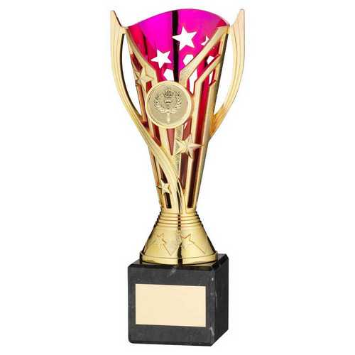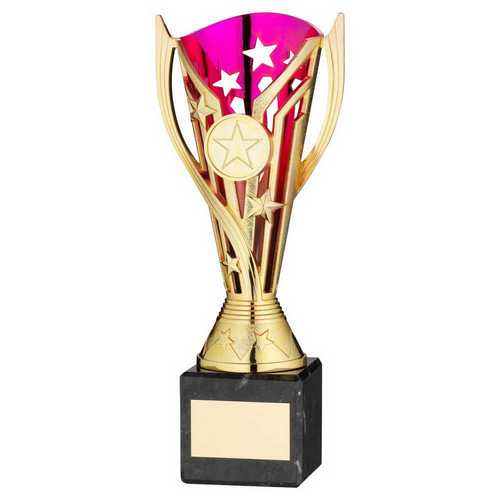 Gold|purple Plastic Flash Cup On Blk Marble Assembled Trophy (1" Cen) - 9in