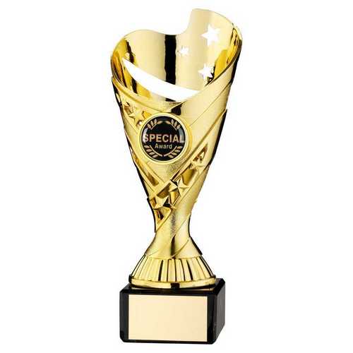 Gold Plastic Sabre Cup On Black Marble Assembled Trophy (1" Cen) - 8in