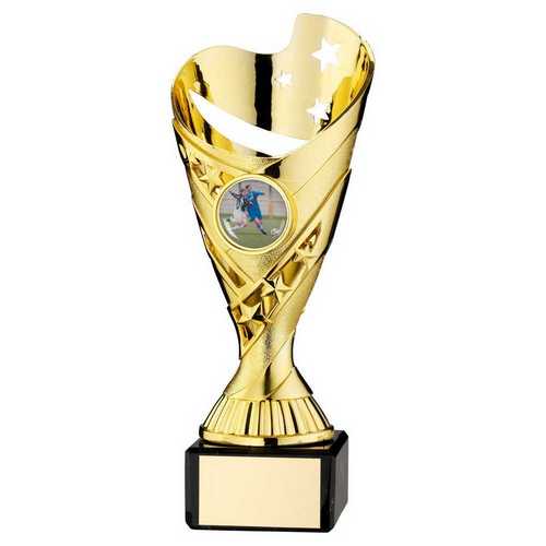Gold Plastic Sabre Cup On Black Marble Assembled Trophy (1" Cen) - 6.75in