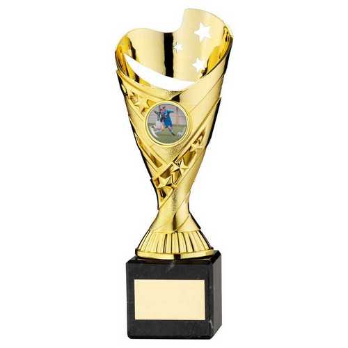 Gold Plastic Sabre Cup On Black Marble Assembled Trophy (1" Cen) - 6.75in