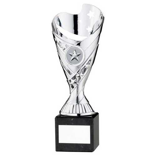 Silver Plastic Sabre Cup On Black Marble Assembled Trophy (1" Cen) - 7.25in