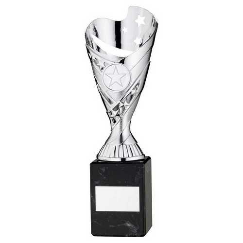 Silver Plastic Sabre Cup On Black Marble Assembled Trophy (1" Cen) - 9in